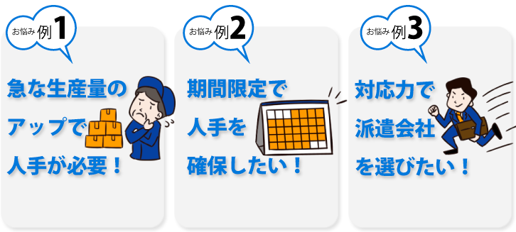 期間・人数・急対応など人材派遣に関するお悩みご相談ください